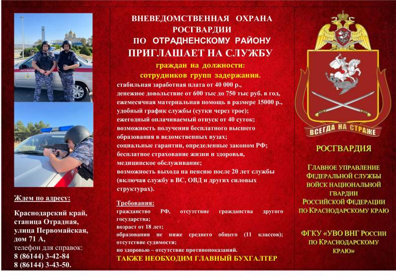 Вневедомственная охрана Росгвардии по Отрадненскому району приглашает на службу |